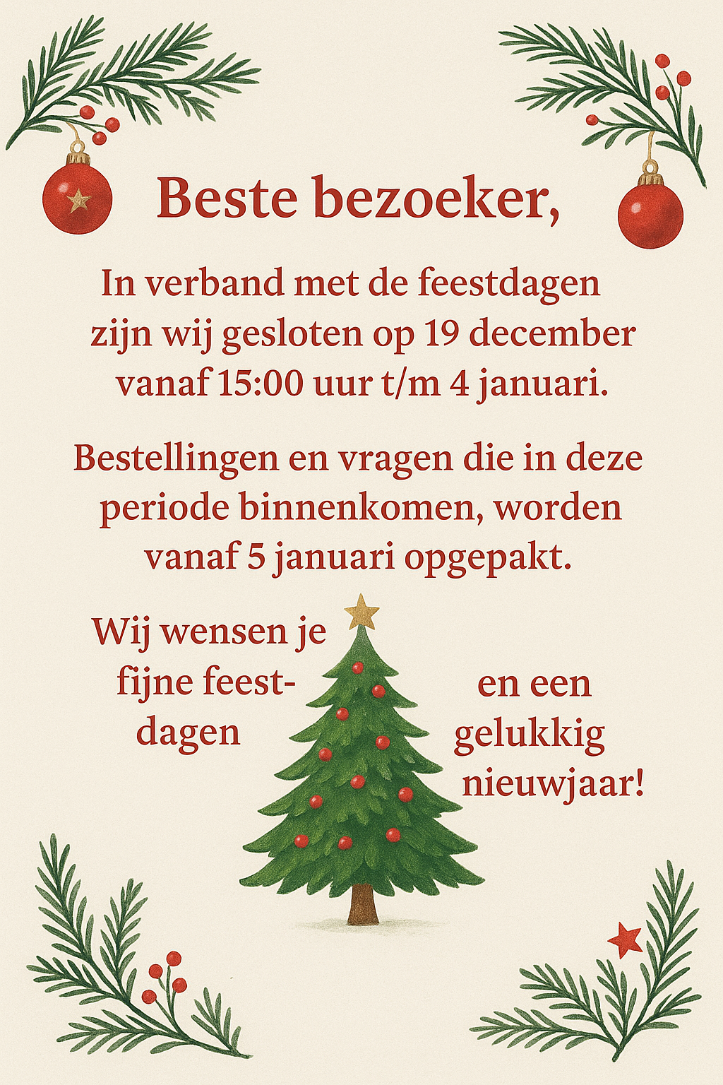 - Bij orders < €125,- hanteren wij een ordertoeslag van € 20,-